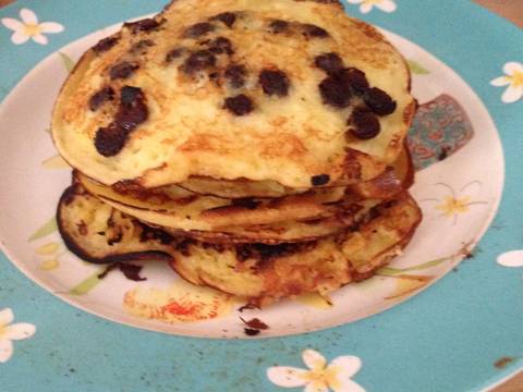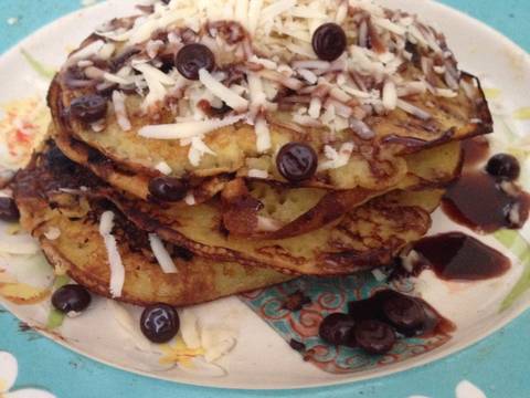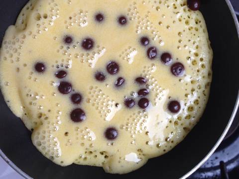 Saat akan dibalik taburi dengan choco chips sesuai selera. Balik dan tunggu hingga matang.